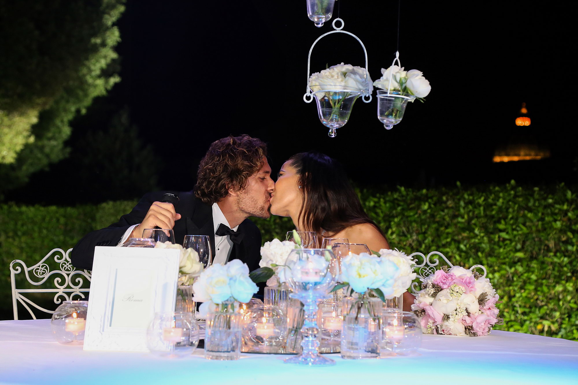 La coppia ha scelto la splendida Villa Piccolomini come location per celebrare il loro amore, un luogo che con le sue vedute panoramiche sulla città eterna ha offerto uno scenario incantevole per questa giornata indimenticabile.