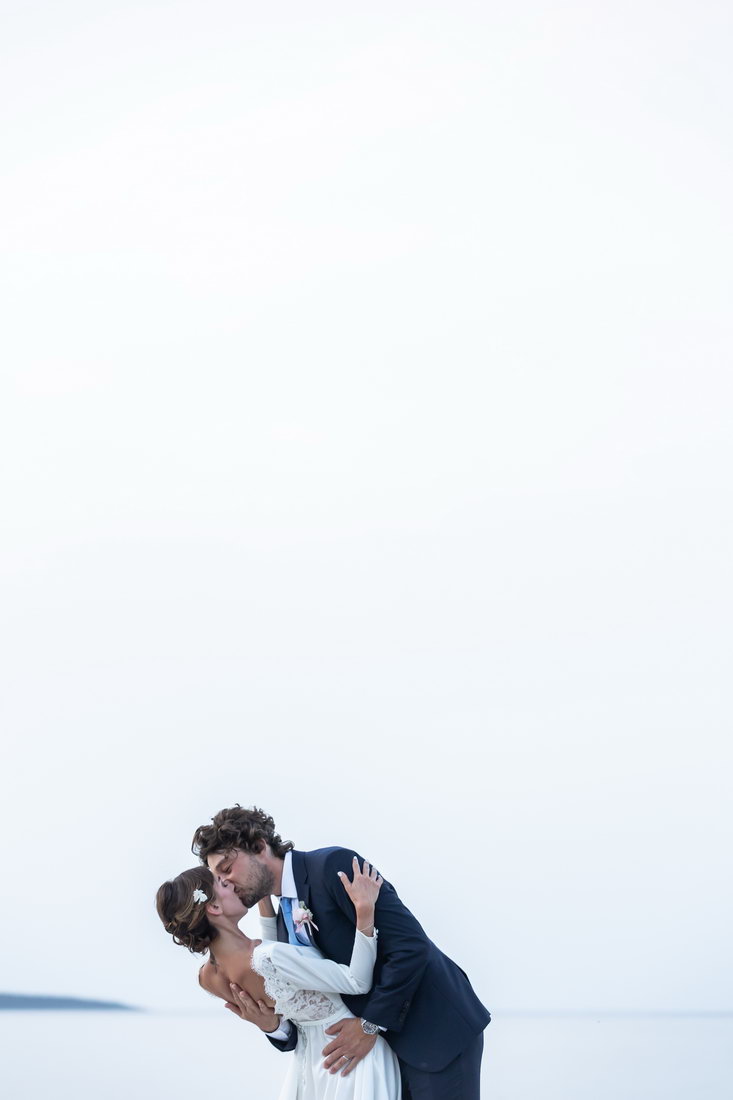 Il ricevimento di matrimonio si svolge in una location meravigliosa in riva al mare dove gli invitati si godono l’aperitivo letteralmente con i piedi nella sabbia mentre cantano e ballano animati dalla musica dal vivo. È proprio durante l’aperitivo che, con uno spritz in mano, Hugo e maddy si sono divertiti a posare per noi su uno scoglio in riva al mare. Loro e il mare. Esattamente le foto che volevano avere!