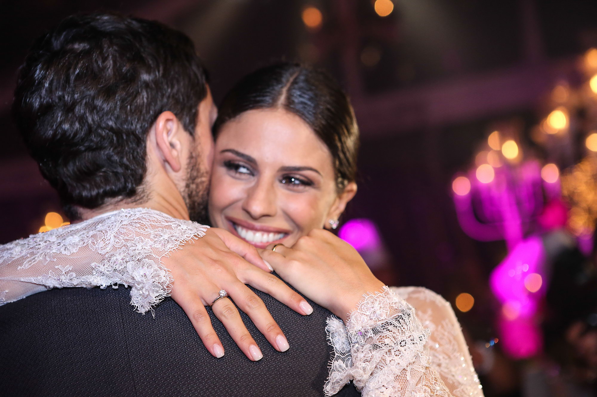 Uno dei momenti più suggestivi della giornata è stato quello dello shooting di coppia realizzato sotto una galleria di luci, un'ambientazione da sogno scelta anche da Vogue Sposa.